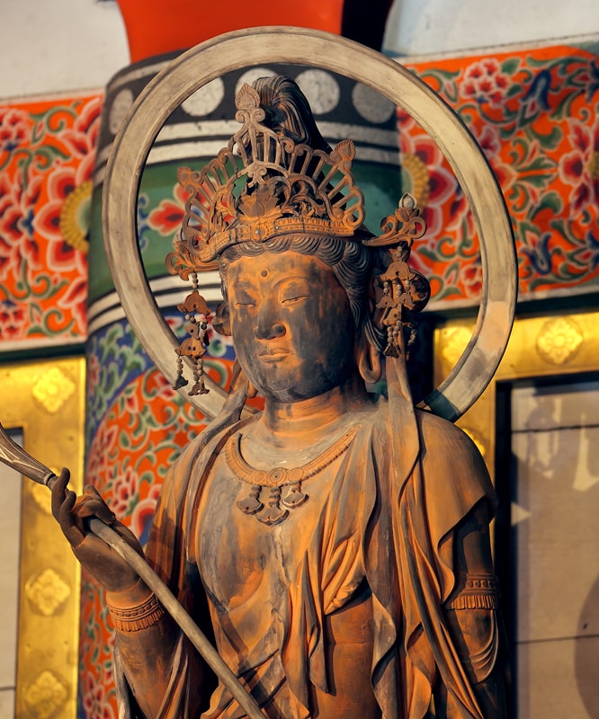 薬師如来の脇侍。如来の右に配され左の日光菩薩に対する。月の光を象徴するという菩薩。