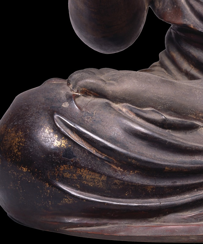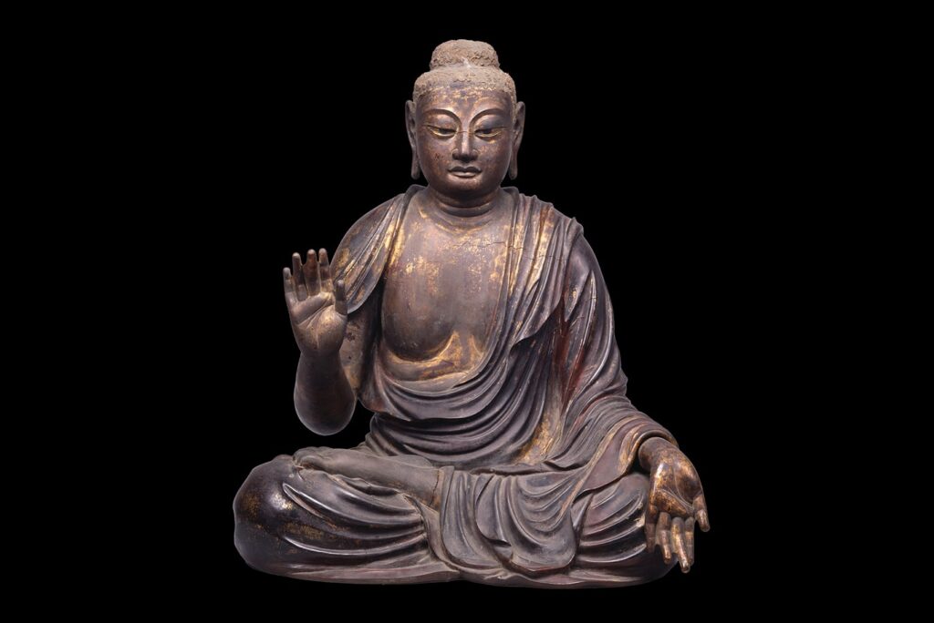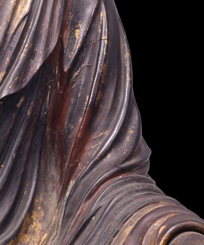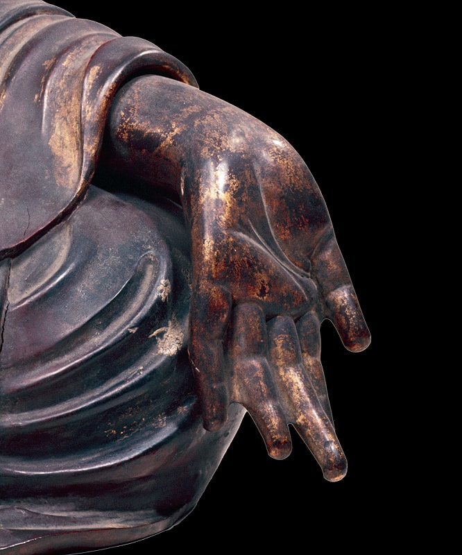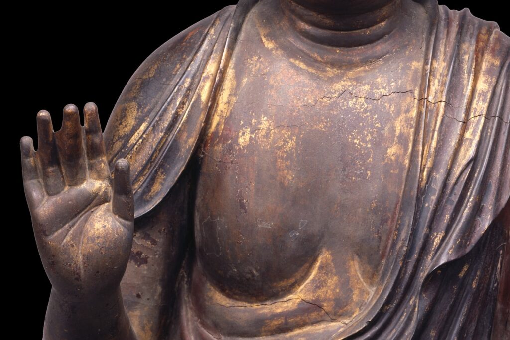 この尊像は奈良時代に造られたもので、像高は68.3cmと小ぶりながら、強い存在感があります。