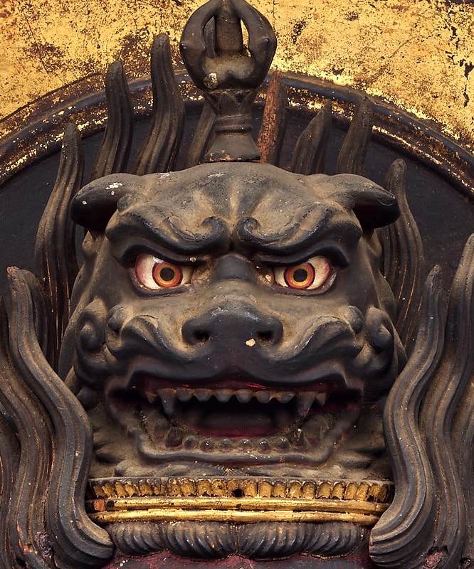 現在は全体に黒味を帯びていますが、かつては全身が赤色に彩られていたことがしのばれます。