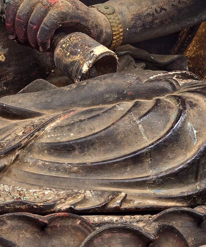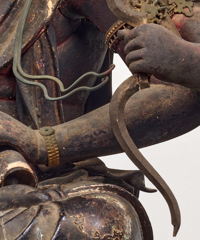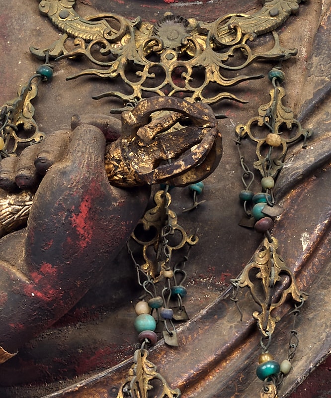 胸や腕には当初の装身具が残され、繊細な技巧が随所に見られます。