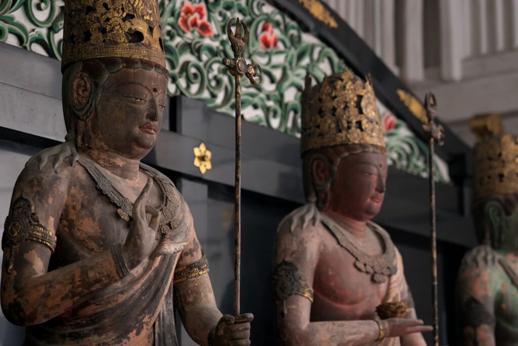 Diese fünf Statuen werden als wichtigste Kultobjekte im Hōtōin-Tempel des Jingoji-Tempels verehrt und stammen aus der Heian-Zeit (794–1185). Der Bau vom Hōtōin begann auf Befehl von Kaiser Ninmyō (808–850).