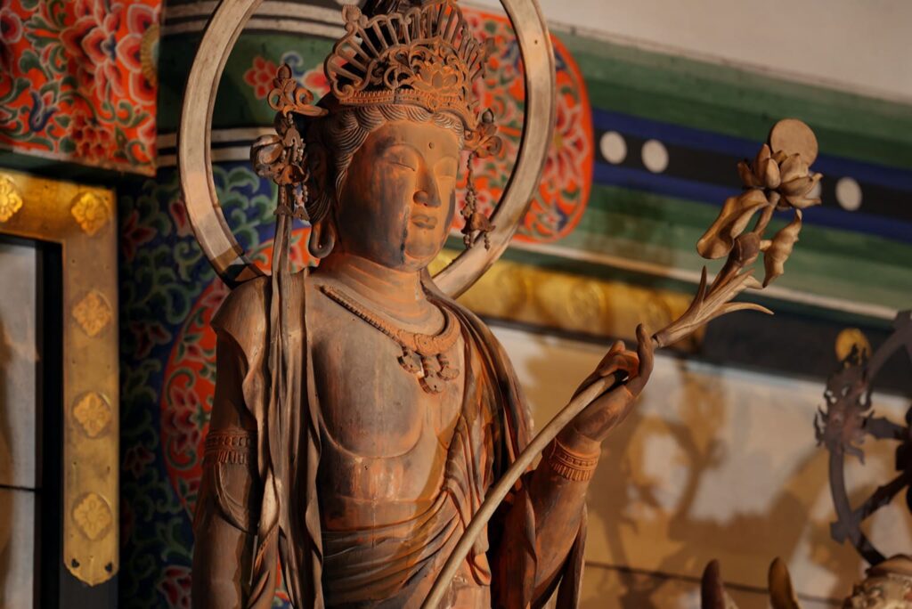 Erzählvideo, das Stehende Statuen der Bodhisattvas Nikkō und Gakkō präsentiert. Schauen Sie das Video, um die Schönheit des Anwesens tiefer zu erleben.