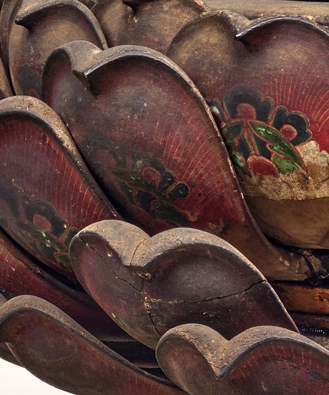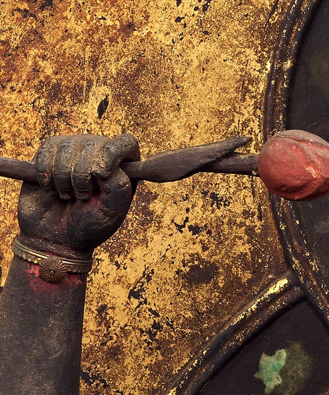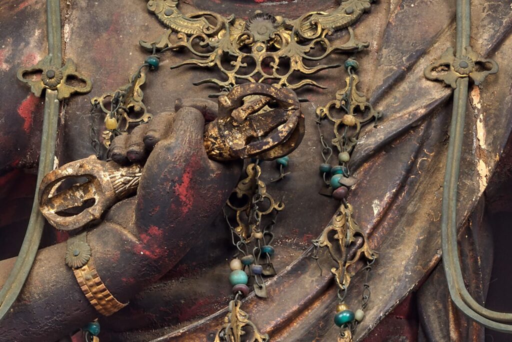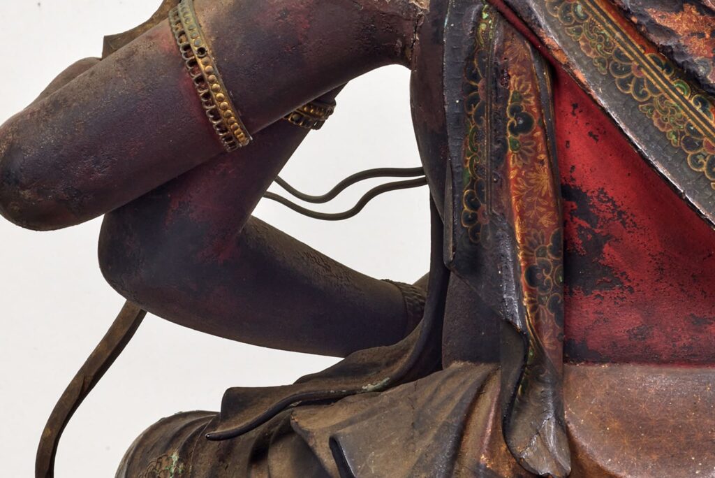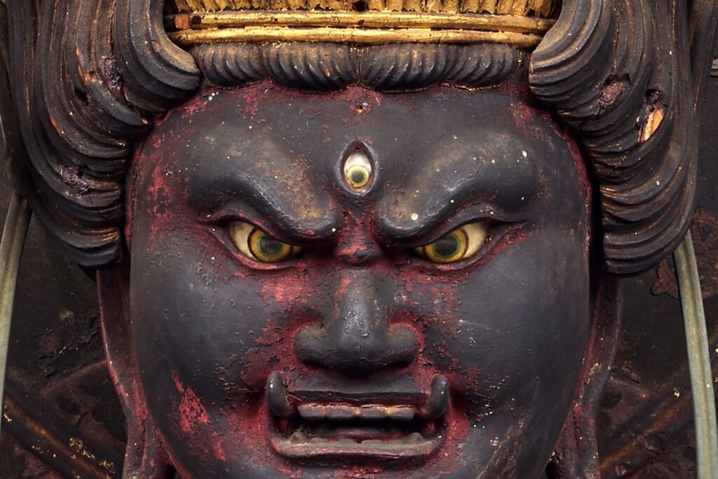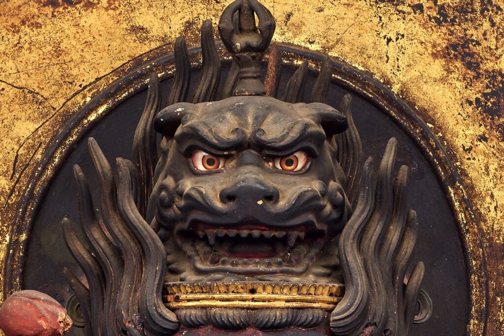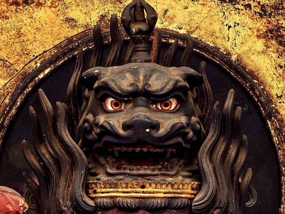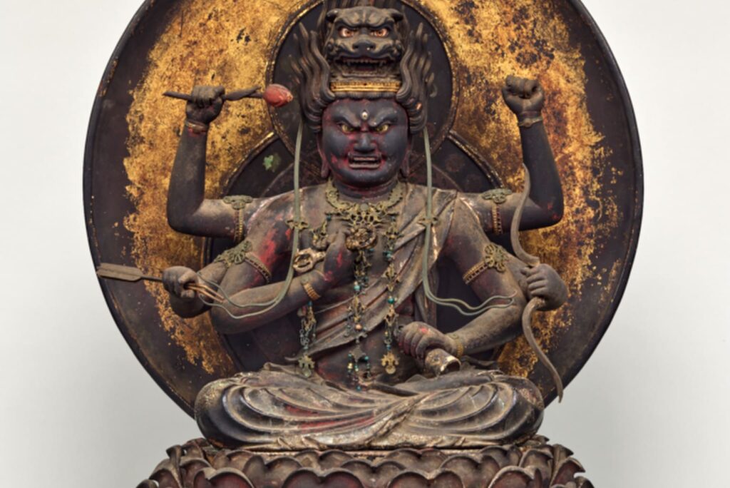 Diese Statue von Aizen Myō-ō (Rāgarāja) wurde 1275 von Kōen (1207–?) geschaffen, einem Meisterkünstler und Enkel des berühmten Bildhauers Unkei (?–1223). Kōen schuf auch Werke für andere berühmte Tempel wie Sanjūsangendō und Tōdaiji.